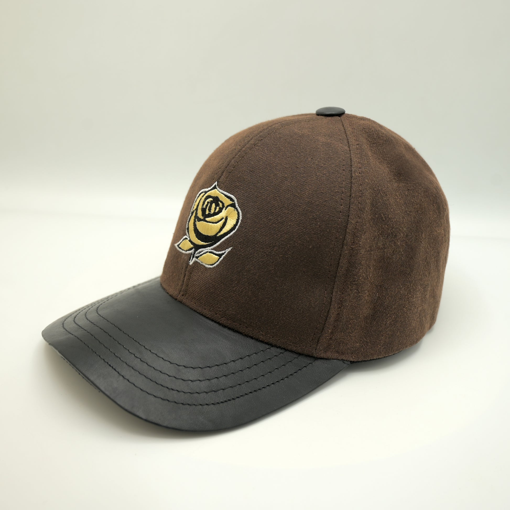 Bold, refined, and artistically detailed — the "Gilded Rose" Cap is a symbol of strength and elegance fused into everyday style. Featuring a rich brown felt-textured crown, this piece commands attention with a centered embroidered golden rose, outlined in black and white for a sharp, iconic contrast.